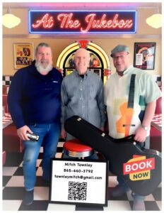 These days, At the Jukebox performs more than 50 shows a year at special events, house concerts, clubs, community functions, and senior living residences. Among the places that have recently hosted them are the Abbey in Townsend Abbey, Daisy’s NA Bar in Maryville and the Oak Ridge Street Painting Festival.