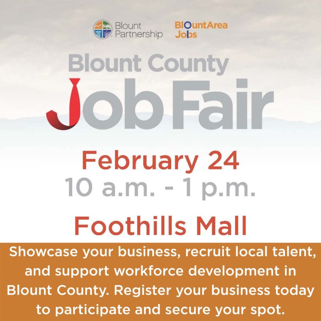 Looking to connect with local talent and grow your team? Join the Blount County Job Fair on February 24, from 10 a.m. to 1 p.m., at Foothills Mall in Maryville!