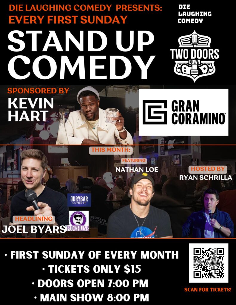Attention Maryville! We have one of your own headlining Sunday Oct 6th 8pm. Come out to see the very funny Joel Byars at your favorite venue in East Tennessee!โ at Two Doors Down – Maryville.