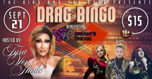 Get your tickets to Drag Bingo now to ensure your place: Last month, we sold out! September’s event benefits Bryant’s Bridge, which helps youth experience homelessness. Host Tyra Von Shade brings the glam as always, and the prizes are almost an afterthought in this night of music and fun. Performances by Fatty Acid, Ace Matthews and Warren Love. Doors open at 6:30, with the show at 8. Tickets are $15 cash. Call 865-984-4847 or come by the bookstore during open hours to hold your seat! This event is 18+ ONLY