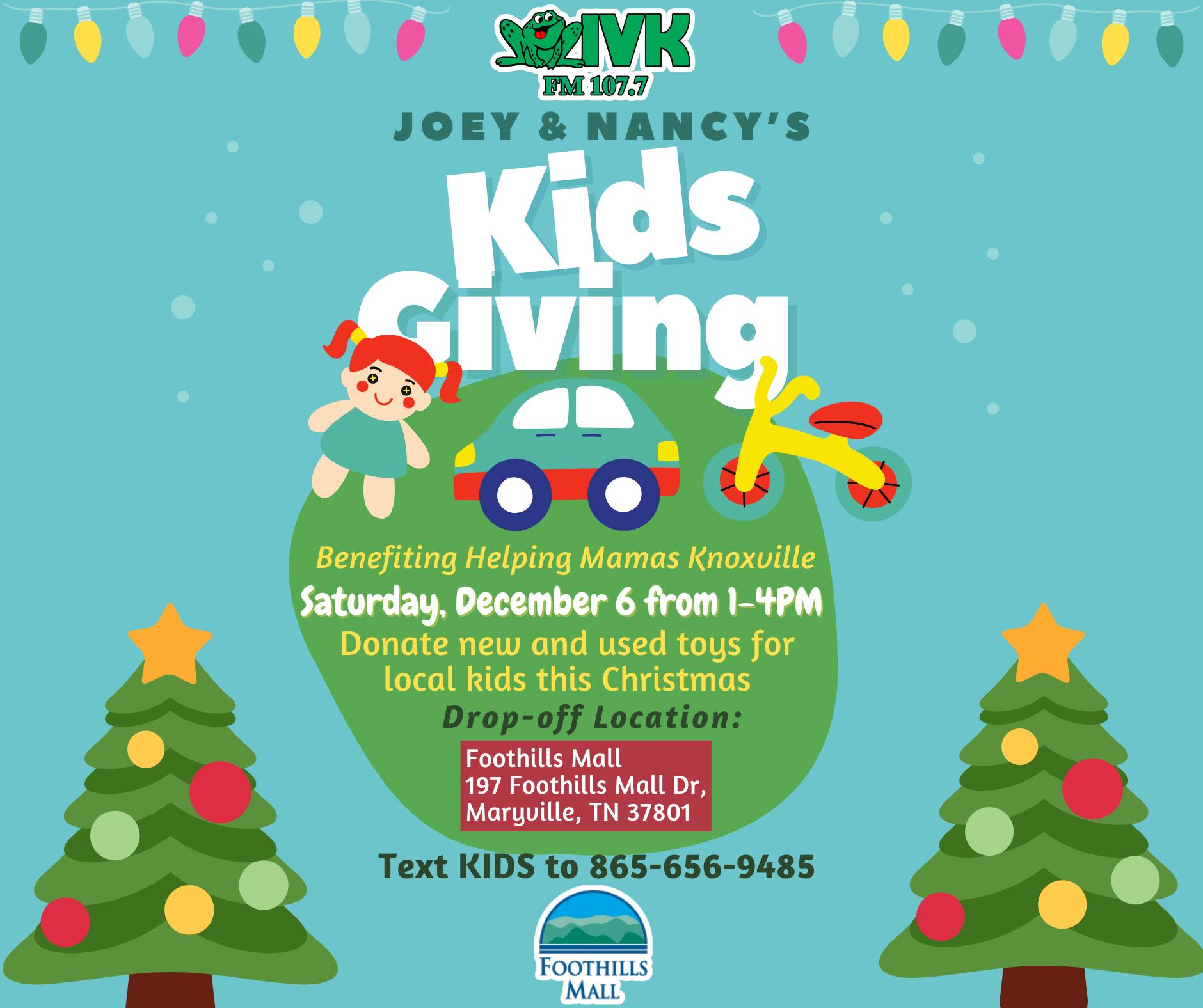 WIVK Radio's Joey and Nancy are on a mission to teach kids the spirit of giving this holiday season! They partnered with Foothills Mall for this special event! Bring by […]