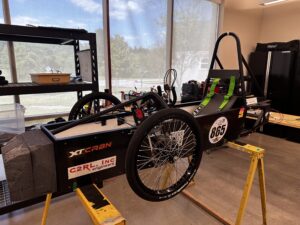 The nine-person team is part of Greenpower USA‘s Electric Car Challenge. Students modify and race vehicles, competing with other teams across the Southeast. Last year, in Clayton-Bradley’s first year in the program, they won their division. This year, they’ve moved into a new division, which permits greater innovations to the stock racecar provided by Greenpower.