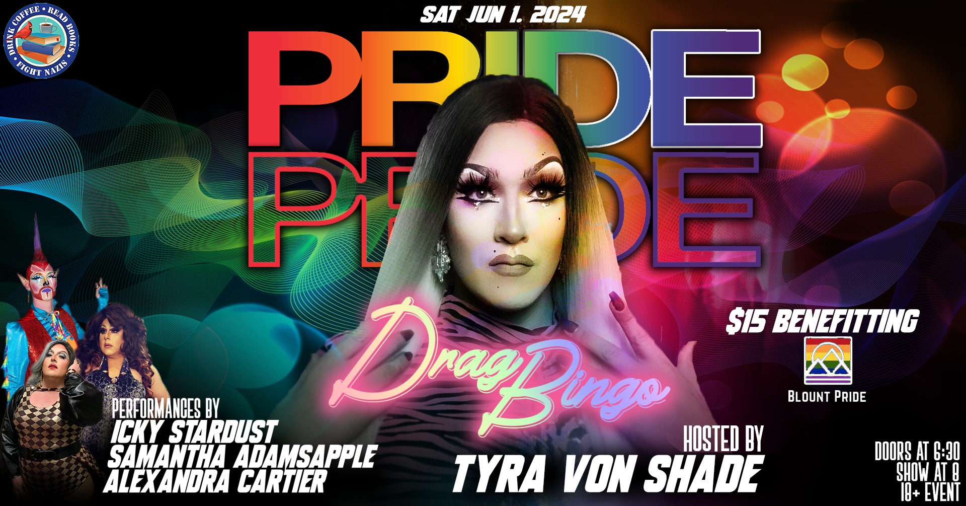 The Bird and The BookWe kick off June with a party! Join host Tyra Von Shade for a Pride Drag Bingo, with proceeds to benefit Blount Pride. Performers include Icky Stardust, Samantha Adamsapple and Alexandria Carter. This show is 18+ only! Doors will open at 6:30, with the show at 8:00. The $15 entry fee goes to support Blount […]