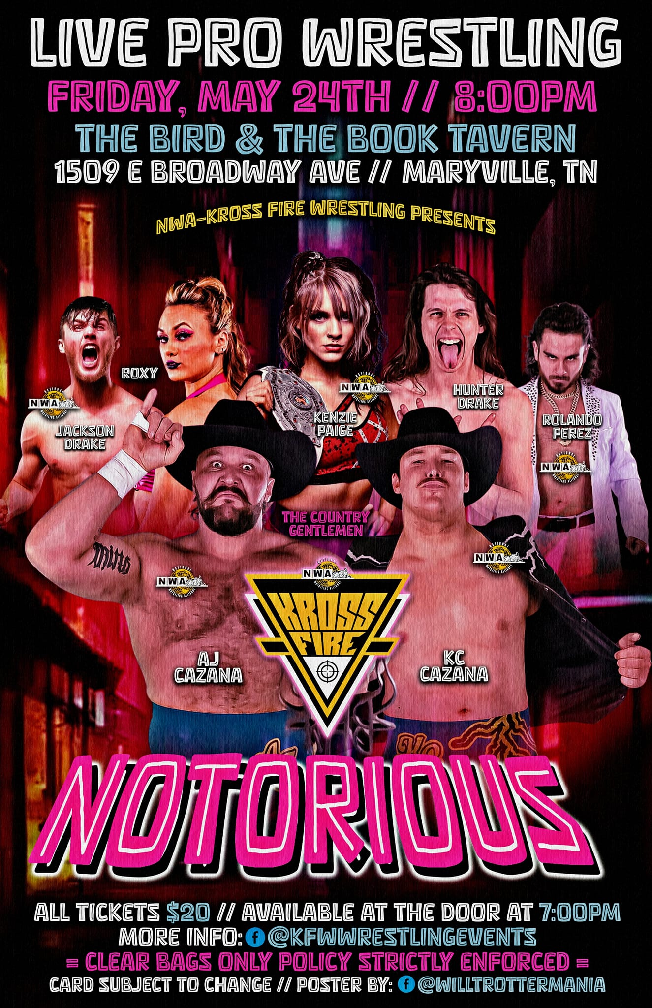 The Bird and The BookNWA KROSS FIRE BIRD/BOOK MAY 24 On May 24th in Maryville,Tennessee at the Historic Bird & Book the Newly Rebranded NWA-Kross Fire will be in the House!!!!!!!!!!! All Ages are Welcome, Alcohol is Served This is our 3rd straight Different Town in Months as we've Flourished..... Lets Continue that on May 24th. News Coming.