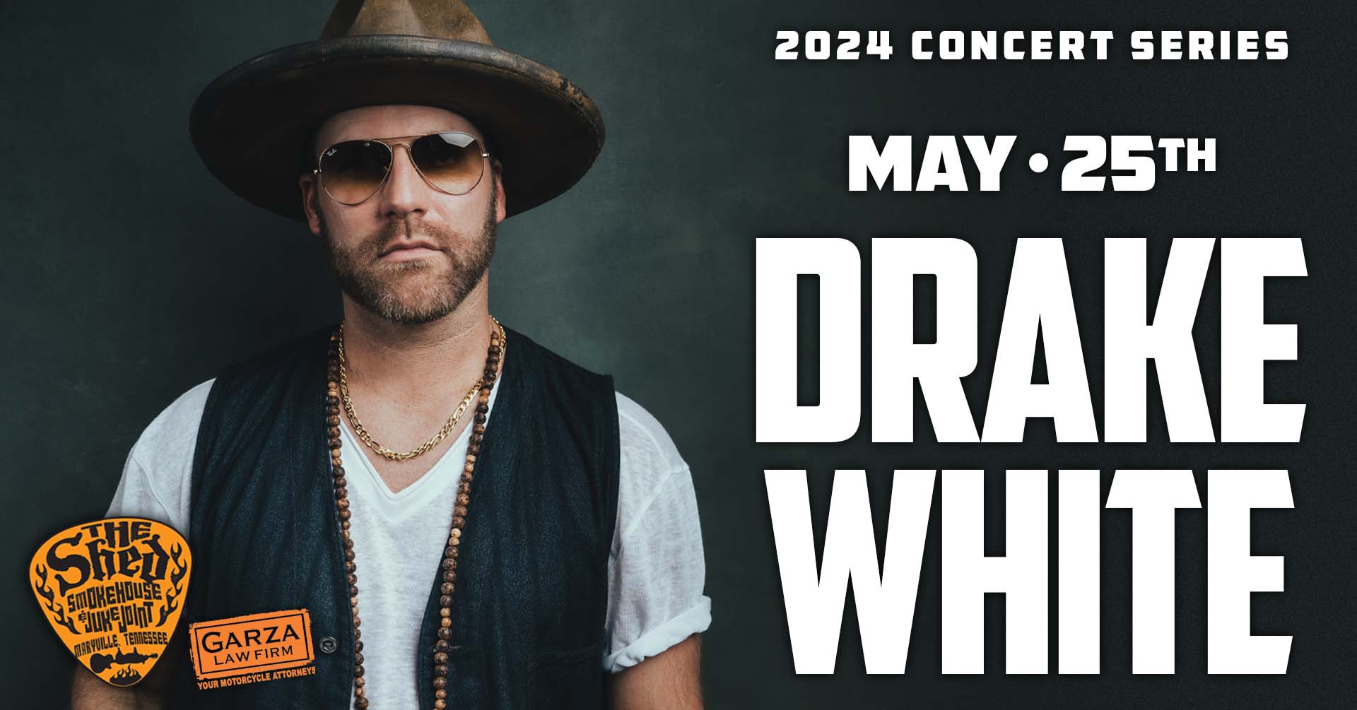 The Shed Smokehouse & Juke JointDrake WhiteDoors: May 25, 2024 6:00 PMOnline Scheduled Ticket Price: DAY OF: $30.00 ADVANCED: $25.00 Purchase Tickets: https://www.etix.com/ticket/servlet/s/38208939